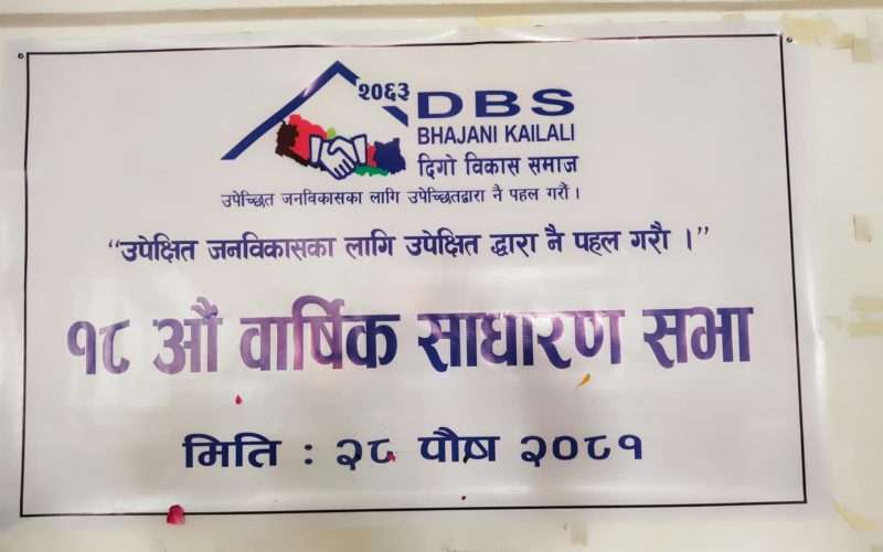 कैलालीको भजनीमा वर्ल्ड भिजन नेशनल नेपाल र लुथुरुन फेडरेशनको साझेदारीमा संस्थाको वार्षिक साधारण सभामा”उपेक्षित जनविकासका लागि उपेक्षित द्वारा नै पहल गरौं” भन्ने नाराका साथ दिगो विकास समाज भजनीको १८औँ साधारण सभामा सम्पन्न भएको थियो। संस्थाका अध्यक्ष राम बहादुर सुनारको अध्यक्षता भएको कार्यक्रमका प्रमुख अतिथी नगर प्रमुख केवल चौधरी, विशिष्ट अतिथि वडा नं १का वडा अध्यक्ष धर्मेन्द्र श्रेष्ठ, वर्ल्ड भिजन नेशनल नेपालका मंगल शाह र महुन्याल बहुमुखी क्याम्पस भजनीका व्यवस्थापक अध्यक्ष टंक प्रसाद जोशी रहनु भएको थियो। कार्यक्रममा दिगो विकास समाज द्वारा संचालित संघ संस्था,शिक्षक, कर्चमरी र सञ्चारकर्मी लगाएतको उपस्थिति रहेको थियो।
