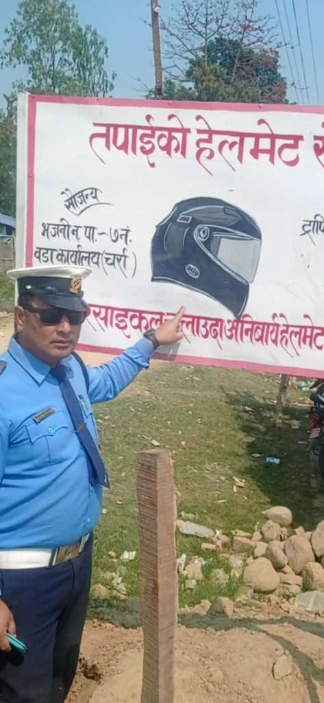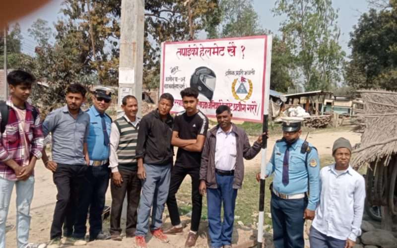 सडकमा बढ्दो सवारी दुर्घटना न्यूनीकरणका लागि ट्राफिक प्रहरीले विभिन्न अभियान सञ्चालन गरेको छ।भजनी नगर पालिका वडा नं ७ चर्रा र ट्राफिक पोष्ट भजनीले संयुक्त रुपमा ट्राफिक सचेतना र सडक दुर्घटना न्युनिकरणको लागी भजनी नगरपालिका वडा न ७ स्थित गणेशमान चोकमा तपाईको हेलमेट खै भन्ने होडिंग बोर्ड राख्ने, विभिन्न ठाउँमा ट्राफिक चिन्ह , सवारी साधनमा स्टिकर टास्ने लगायत कार्य सम्पन्न गरेको छन।