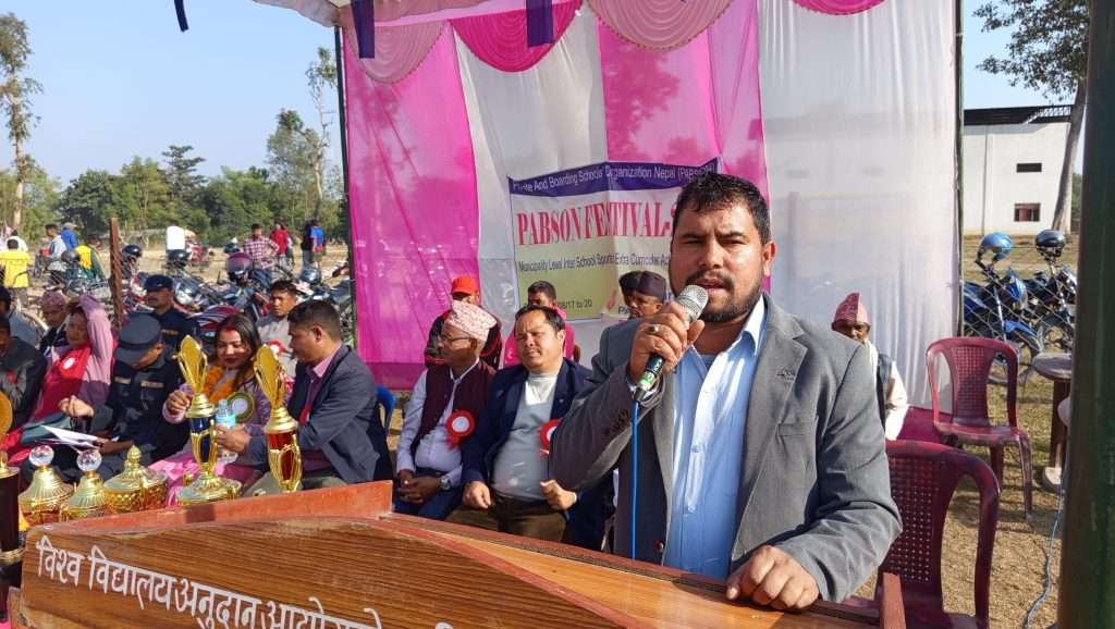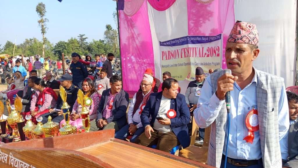 के. आर. पाण्डेय ,मंसिर १७ /निजी तथा आवासीय विद्यालय अर्गनाइजेसन नेपाल (प्याब्सन) भजनी नगर कार्य समितिको आयोजनामा आयोजित “प्याब्सन फेस्टिवल-२०८२” (पालिका स्तरीय अन्तर विद्यालय खेलकुद तथा अतिरिक्त क्रियाकलाप प्रतियोगिता) को एक कार्यक्रमका बीचमा उद्घाटन भएको छ ।निजी तथा आवासीय बिद्यालय अर्गनाइजेसन (प्याब्सन) नेपाल भजनी नगरपालिकाको आयोजनामा भएको हो।