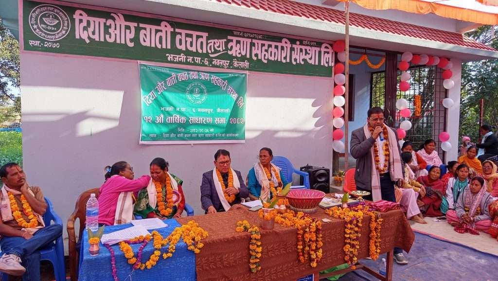 कैलालीको भजनी ६ मा रहेको दिया और बाती बचत तथा ऋण सहकारी सस्था लि. को १२ औं वार्षिक साधारण सभा तथा नयाँ भवनको उद्घाटन गरिएको छ। अन्ती चौधरीको सभापतित्वमा भएको भेलाका प्रमुख अतिथि भजनी नगरपालिका नगर प्रमुख केवल चौधरी रहनु भएको थियो। संस्थाकी व्यवस्थापक लक्ष्मी चौधरीले प्रस्तुत गरेको प्रगति प्रतिवेदनमा शेर पूँजी १४७८३००,बचत१३६७२८२८,लगानी१२०८४०००,कुल सम्पत्ति ३२९८१७७.५६शेर सदस्य ४८५ रहेको छ । नगर प्रमुख चौधरीले सबै भन्दा बढी संख्या भएको महिला सहकारी संस्थाले राम्रो काम गरेकोमा धन्यबाद दिएका छन् र आगामी दिनमा सहयोग गर्ने प्रतिबद्धता बताए।