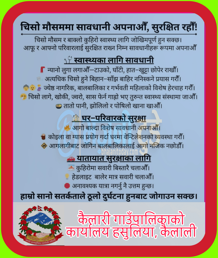 भजनी नगरपालिका, कैलालीमा विद्यालय केन्द्रित एच.पि.भी. खोप अभियान–२०८२ सफलतापूर्वक सञ्चालन गर्ने उद्देश्यले अन्तरक्रिया तथा गोष्ठी कार्यक्रम सम्पन्न भएको छ। पूर्ण खोप लगाई बालबालिकालाई विभिन्न रोगबाट सुरक्षित बनाउने राष्ट्रिय अभियानलाई प्रभावकारी रूपमा कार्यान्वयन गर्न नगरपालिका स्तरीय खोप समन्वय समिति तथा सम्बन्धित सरोकारवालाहरूको सहभागितामा कार्यक्रम आयोजना गरिएको हो।